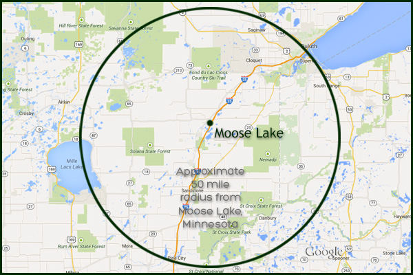 Our geographical market is generally located within a 50 mile radius (as the crow flies) of Moose Lake, Minnesota. In certain circumstances, we could accomodate projects farther than that. Please give us a call for more details.